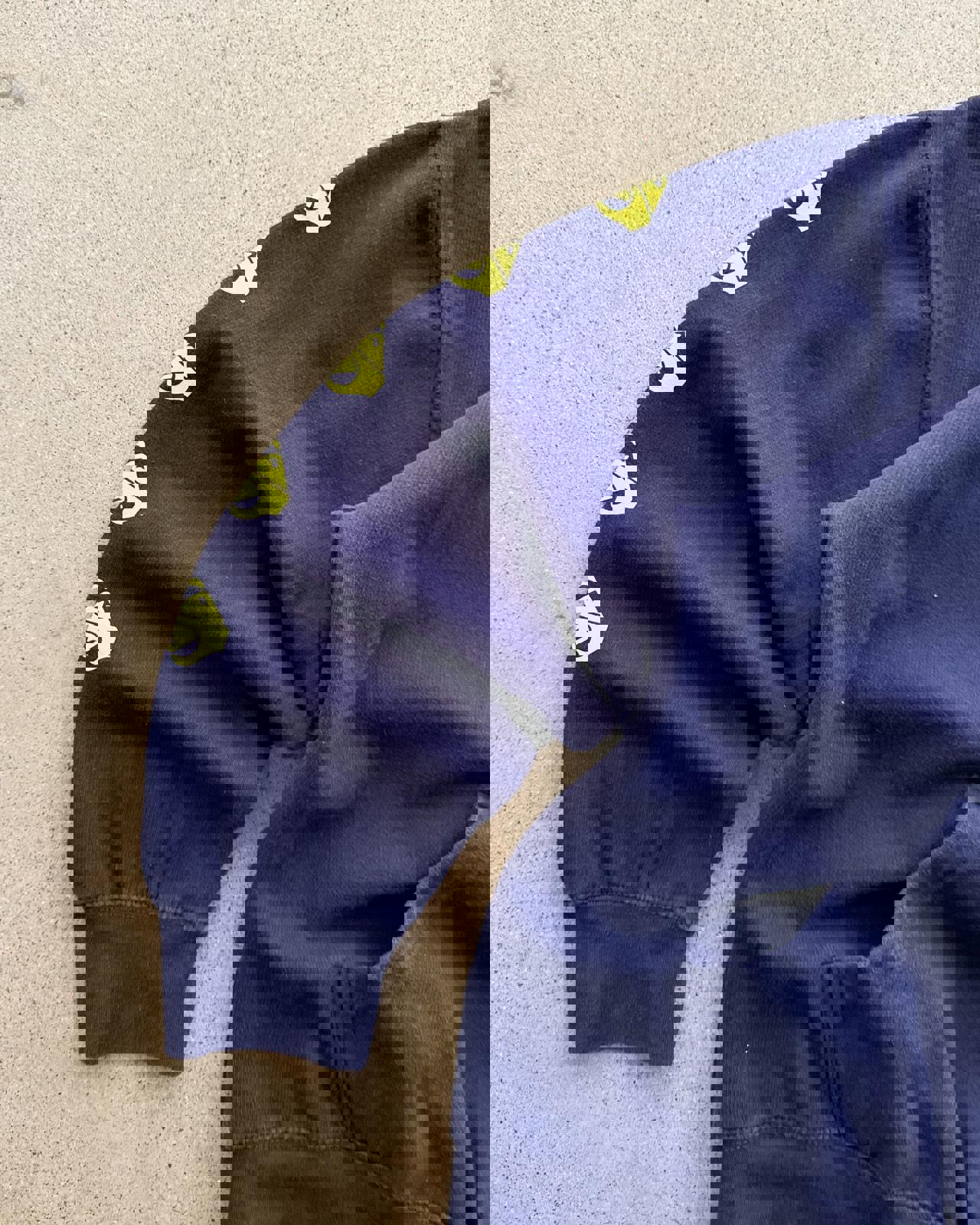 • Sold as is; has a minor sun faded stain on the sleeve cuffs and oil stain on front near the front pouch pocket