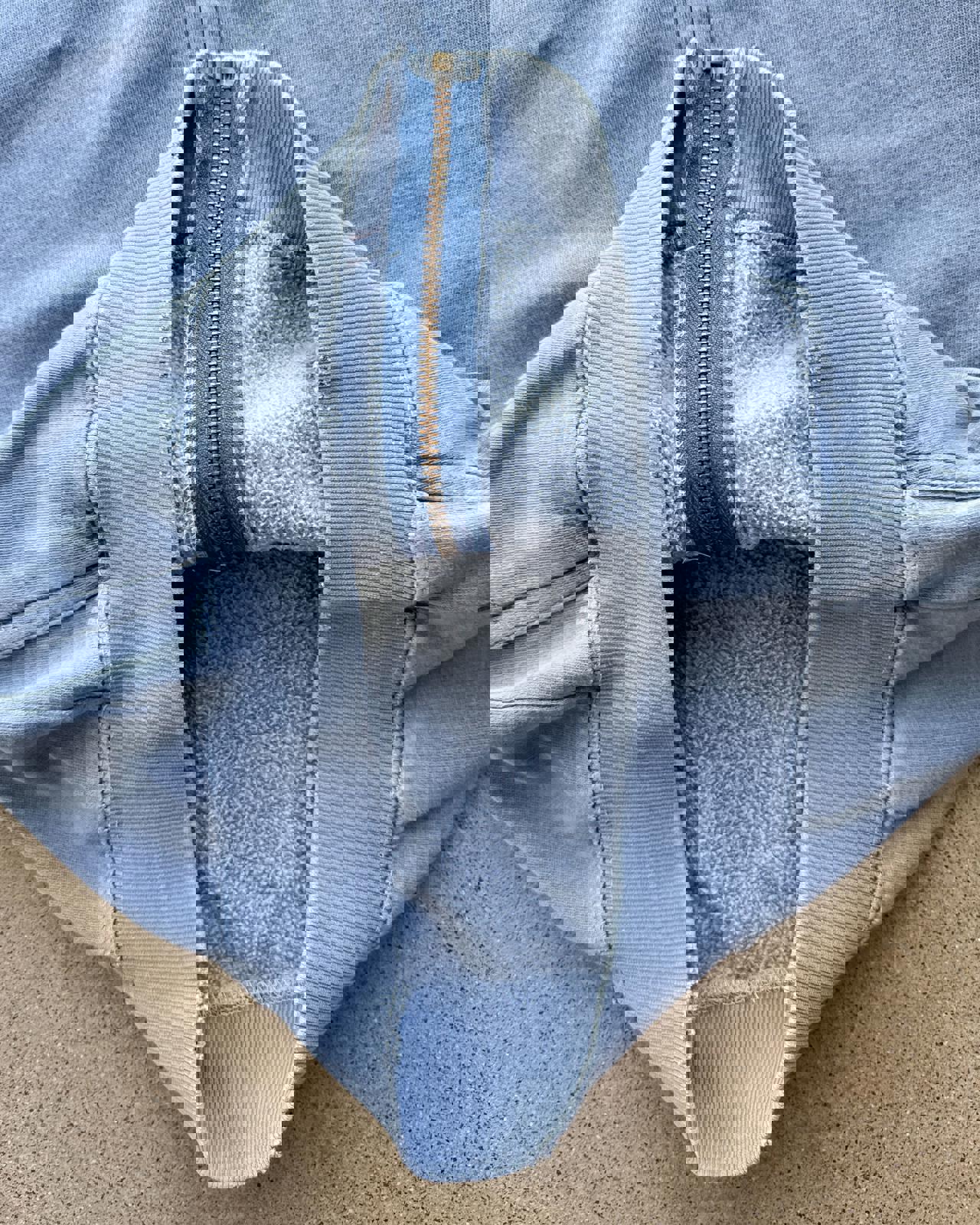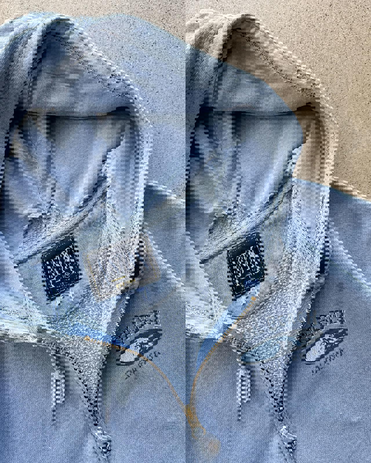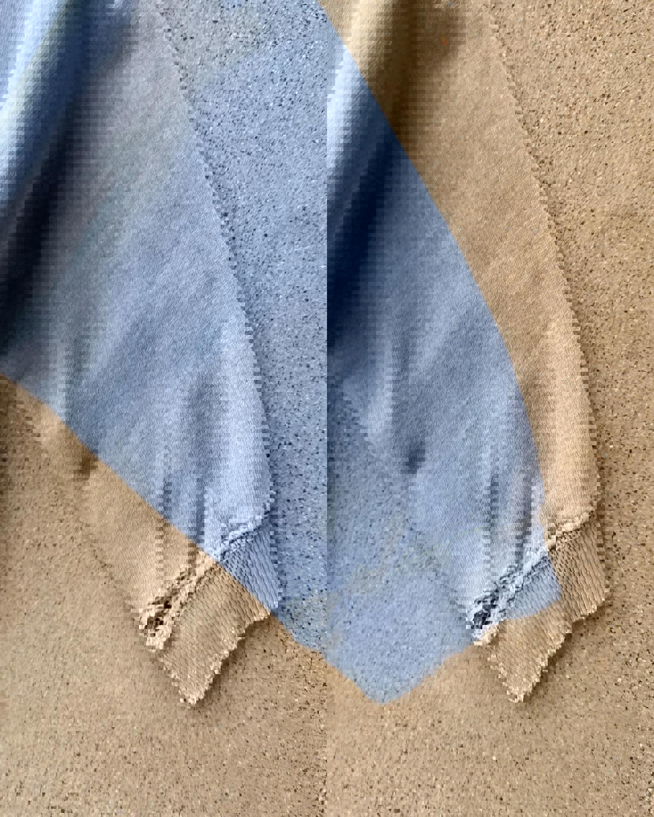 • 2000s era, tag was cut so unknown where it was made, faded overdyed blue color fabric with perfect distressing all throughout, Seal Beach California double sided graphics